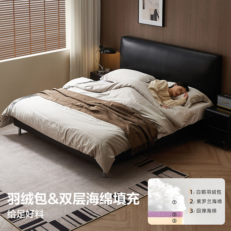 全友家居意式 小户型1.5m单人床 极简主卧室1米8双人真皮床2025新款
