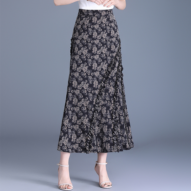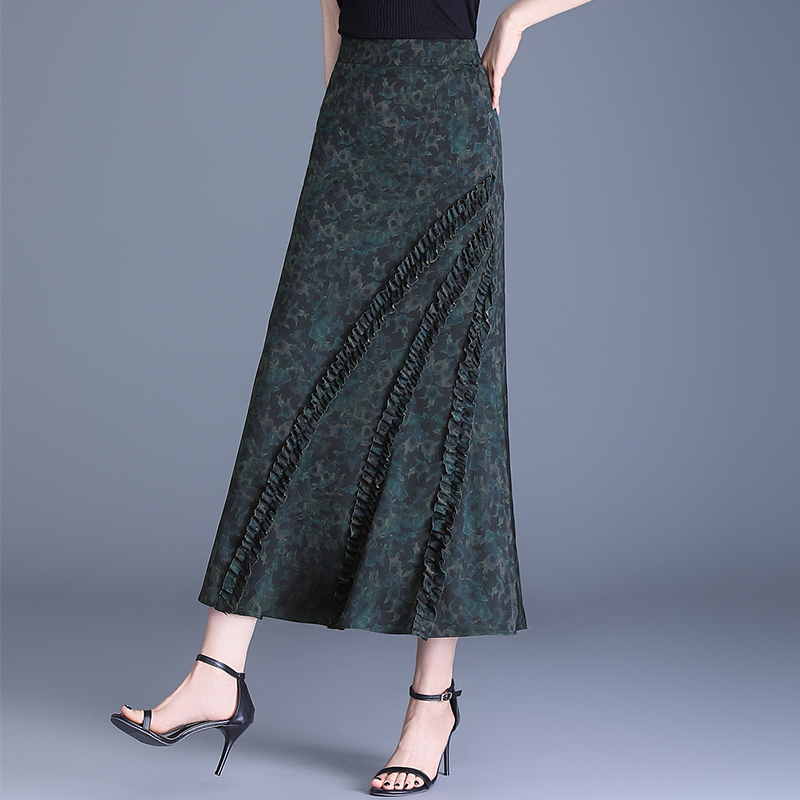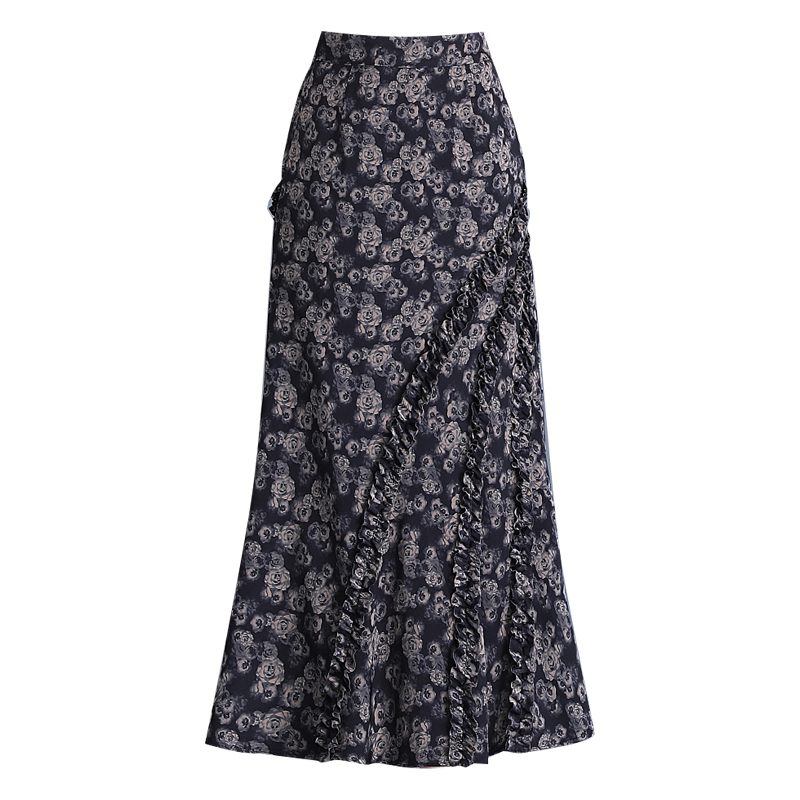 507358 下摆蕾丝拼接抽绳松紧腰半身裙女装 三福长裙2025秋季