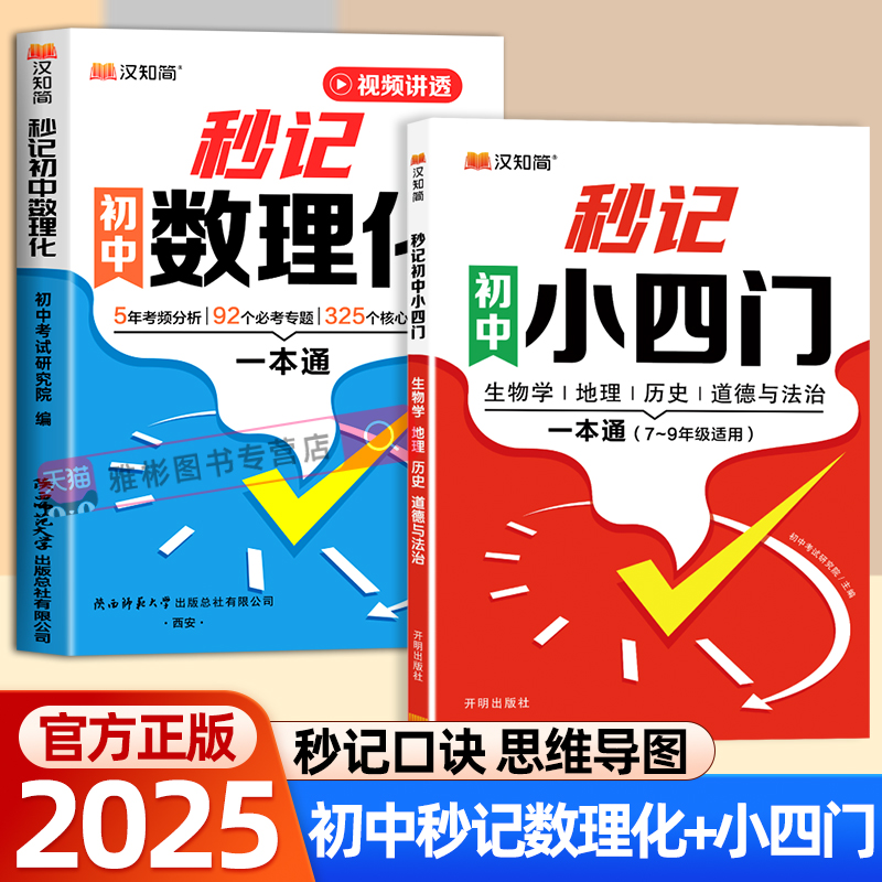 2025新版 定律大全考情分析思维导图知识图解一本通 汉知简秒记初中数理化秒记小四门考点快速提分七7八8九9年级数学物理化学公式