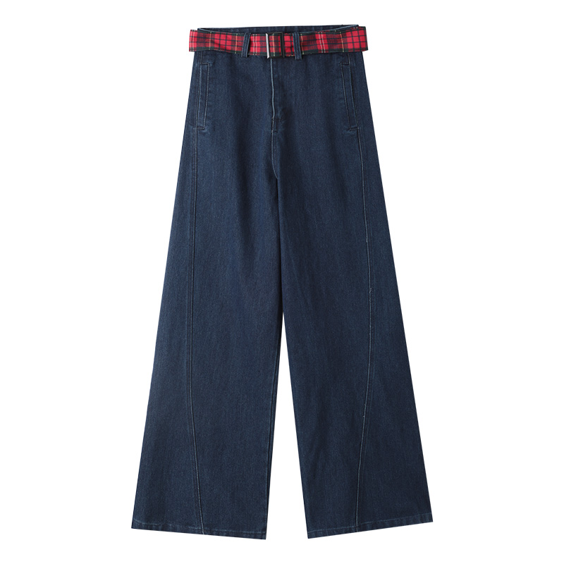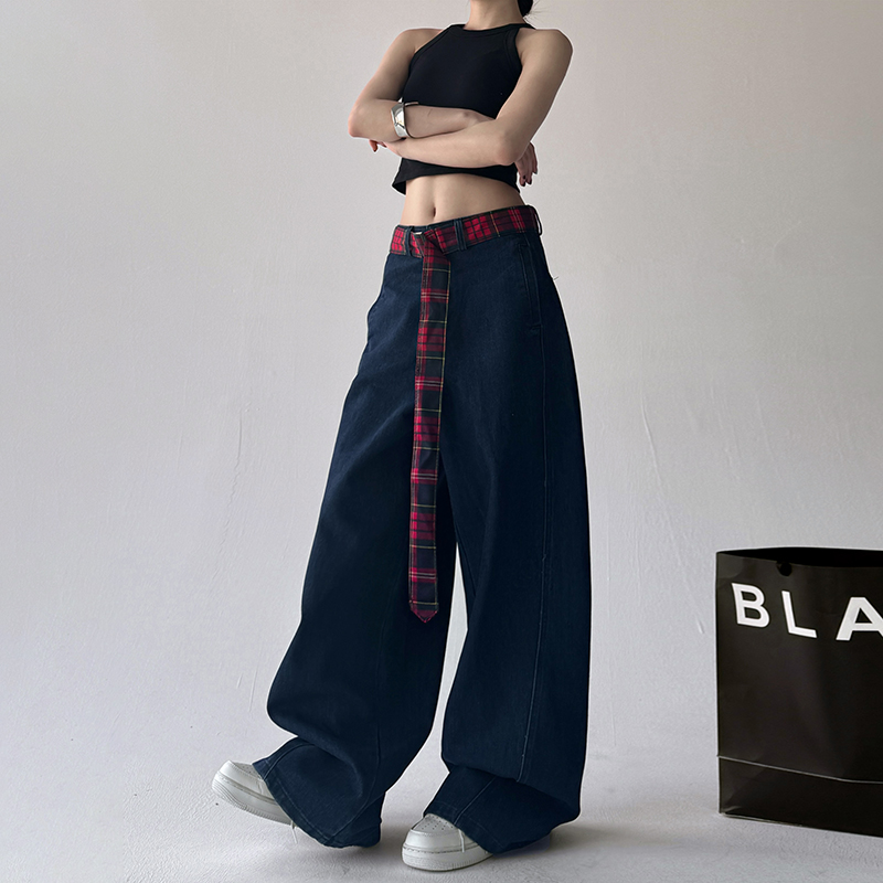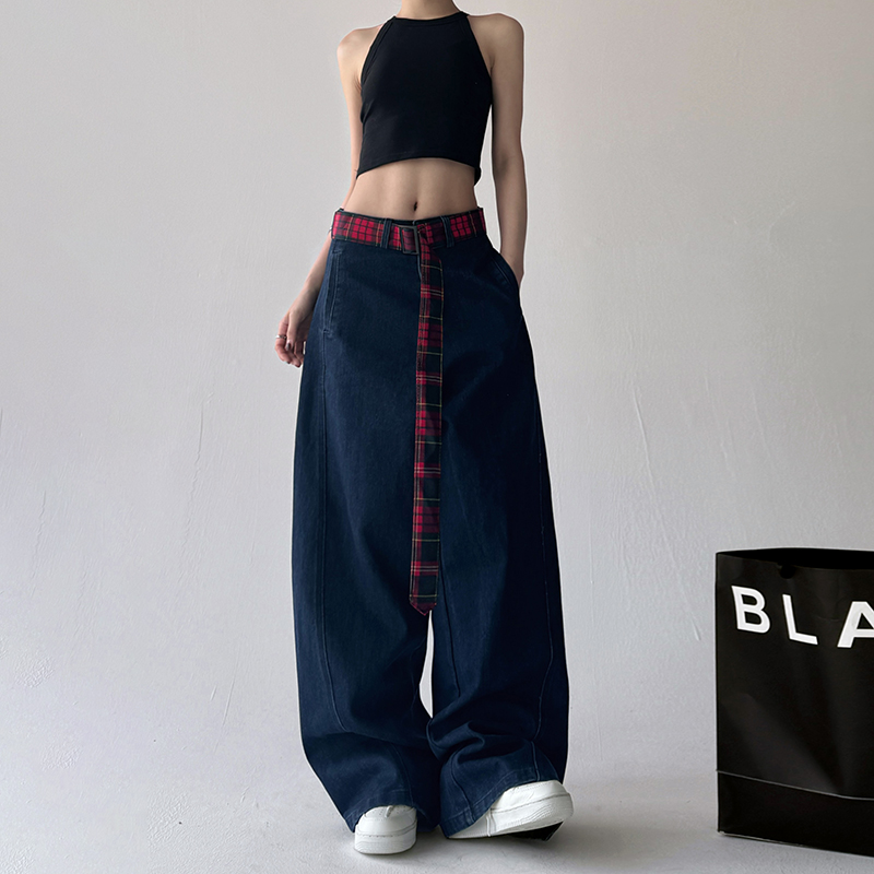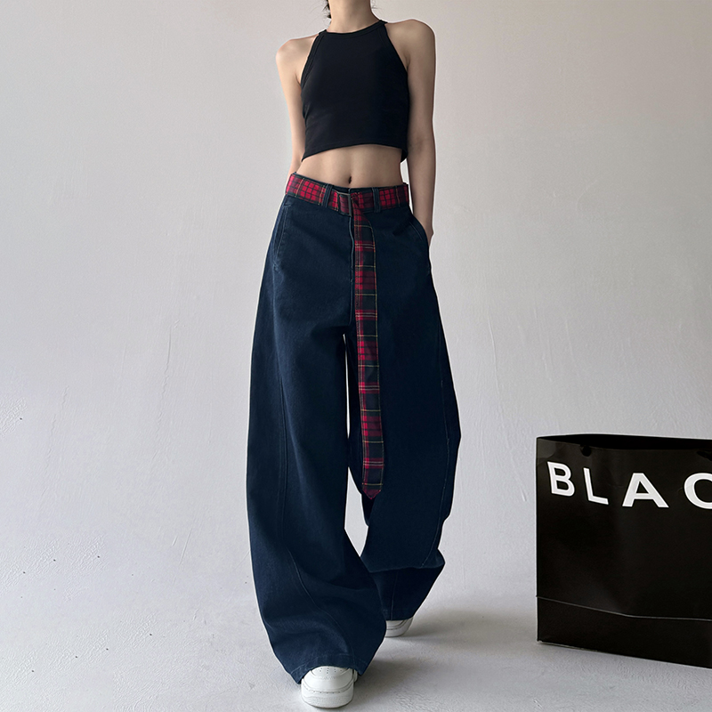 拼接直筒阔腿裤 牛仔裤 潮流高腰胖mm显瘦复古美式 时尚 女2025年新款
