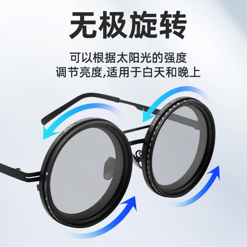 ND2 偏光太阳镜调节明暗随心舒适镜太阳 400可调穿戴眼镜ND9档可调减光墨镜钓鱼演唱会滤镜眼镜UV防紫外线个性