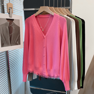 女毛衣宽松上衣 外套25早秋穿搭新款 阔色粉色撞色假两件针织衫 开衫