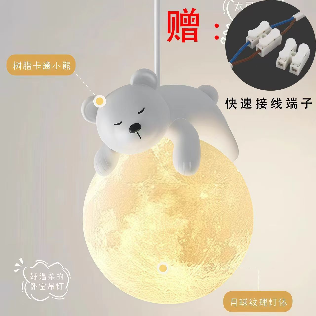 3D床头壁灯儿童房公仔小熊树脂月球灯房间卧室创意卡通灯