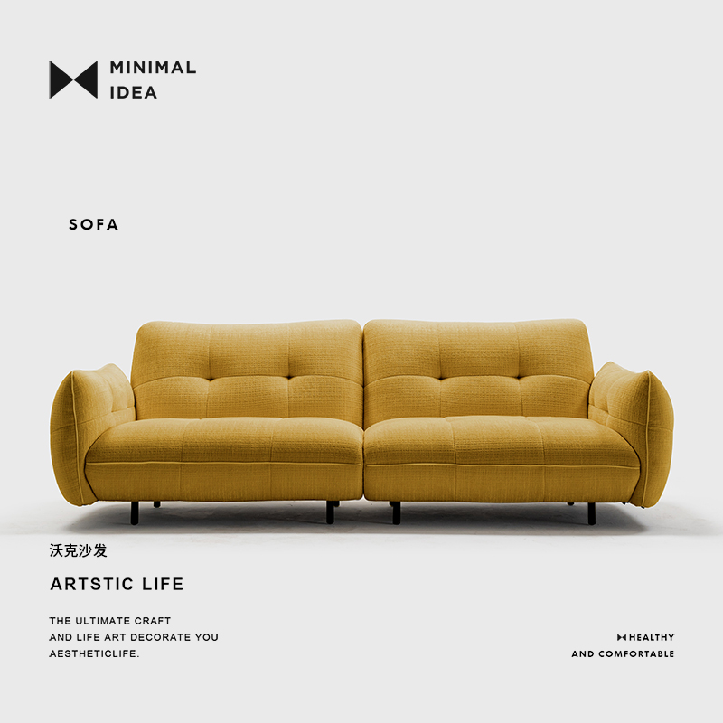 奶油风布艺客厅现代简约中古三人 复古黄轻法式 极简概念 沃克沙发