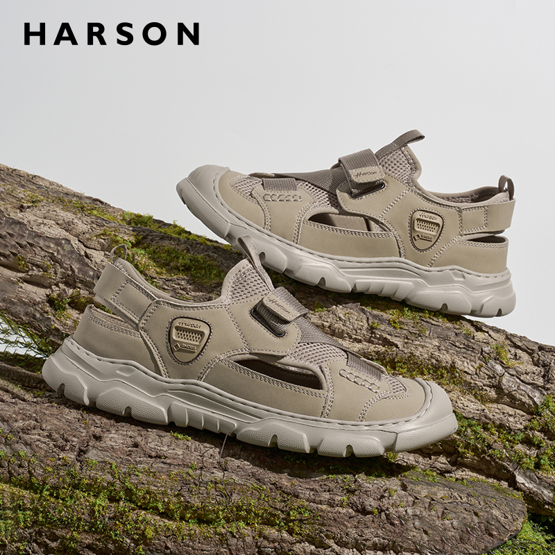 男士 新款 运动休闲鞋 户外溯溪鞋 哈森男鞋 外穿沙滩凉鞋 夏透气网面鞋