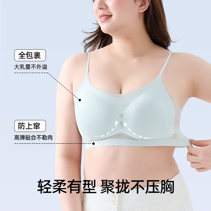 胖mm200斤无痕聚拢防下垂大胸内衣 薄款 大码 美背吊带文胸一体夏季