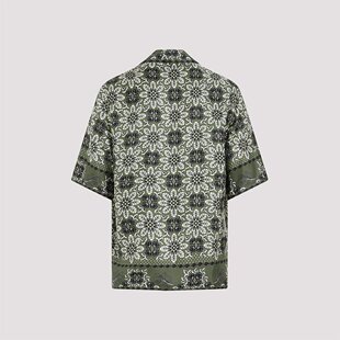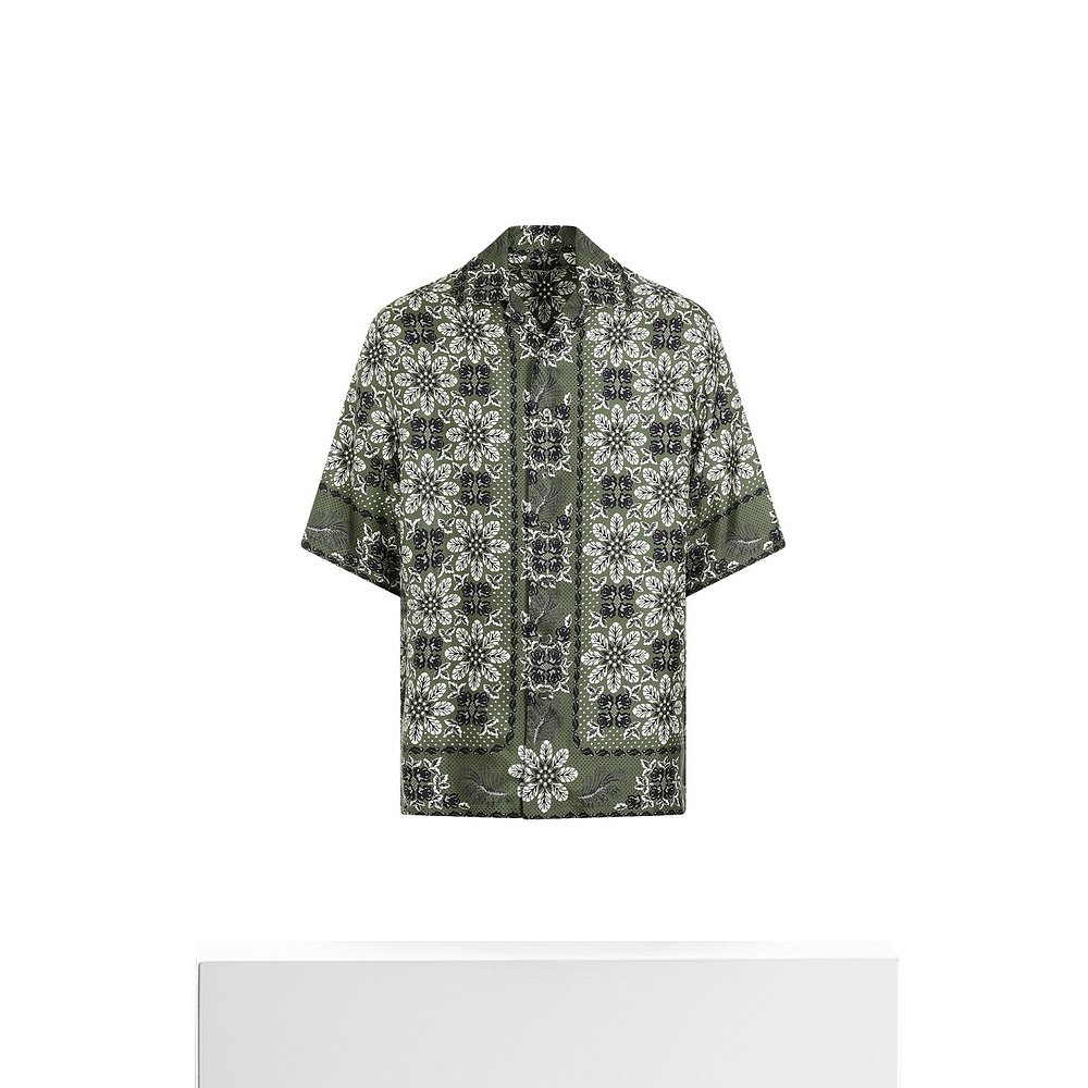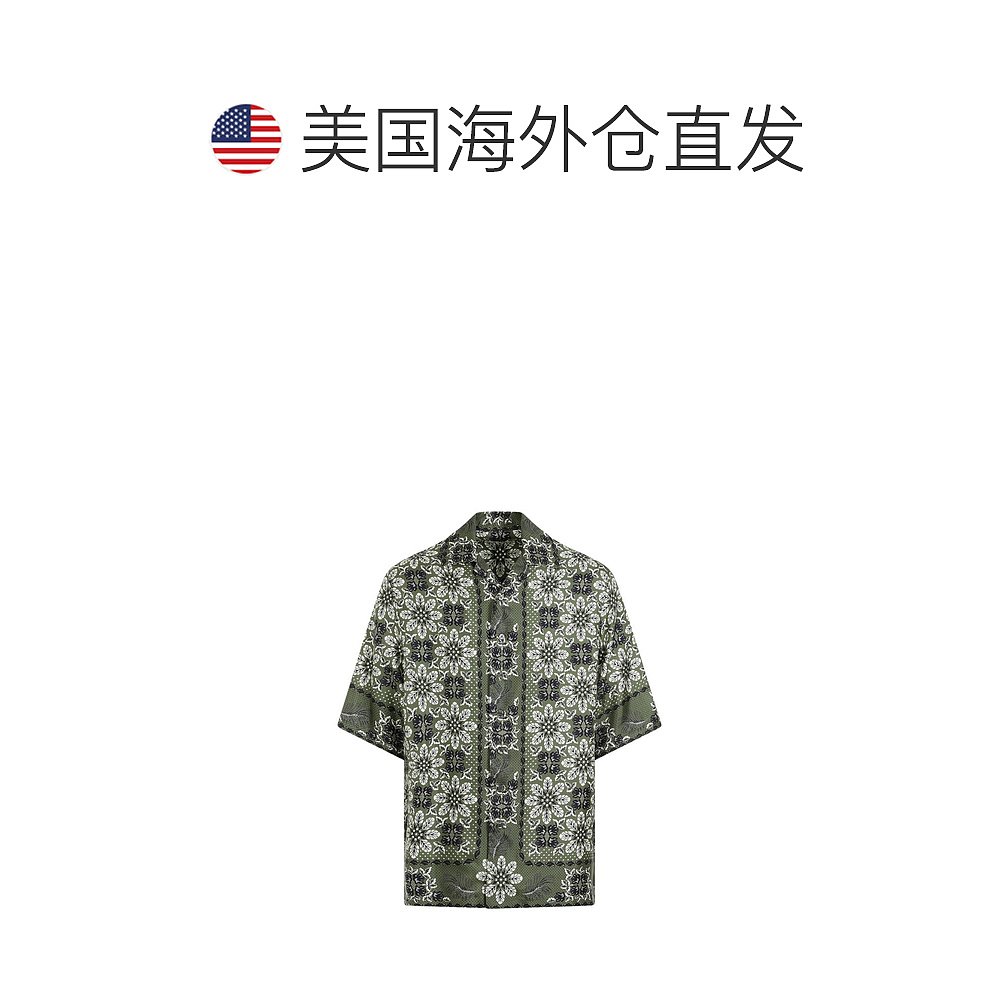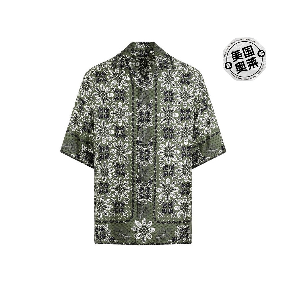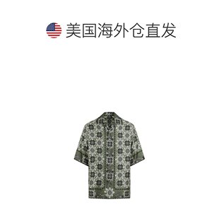 直发 美国奥莱 自营etro绿色印花丝绸方形衬衫 绿色