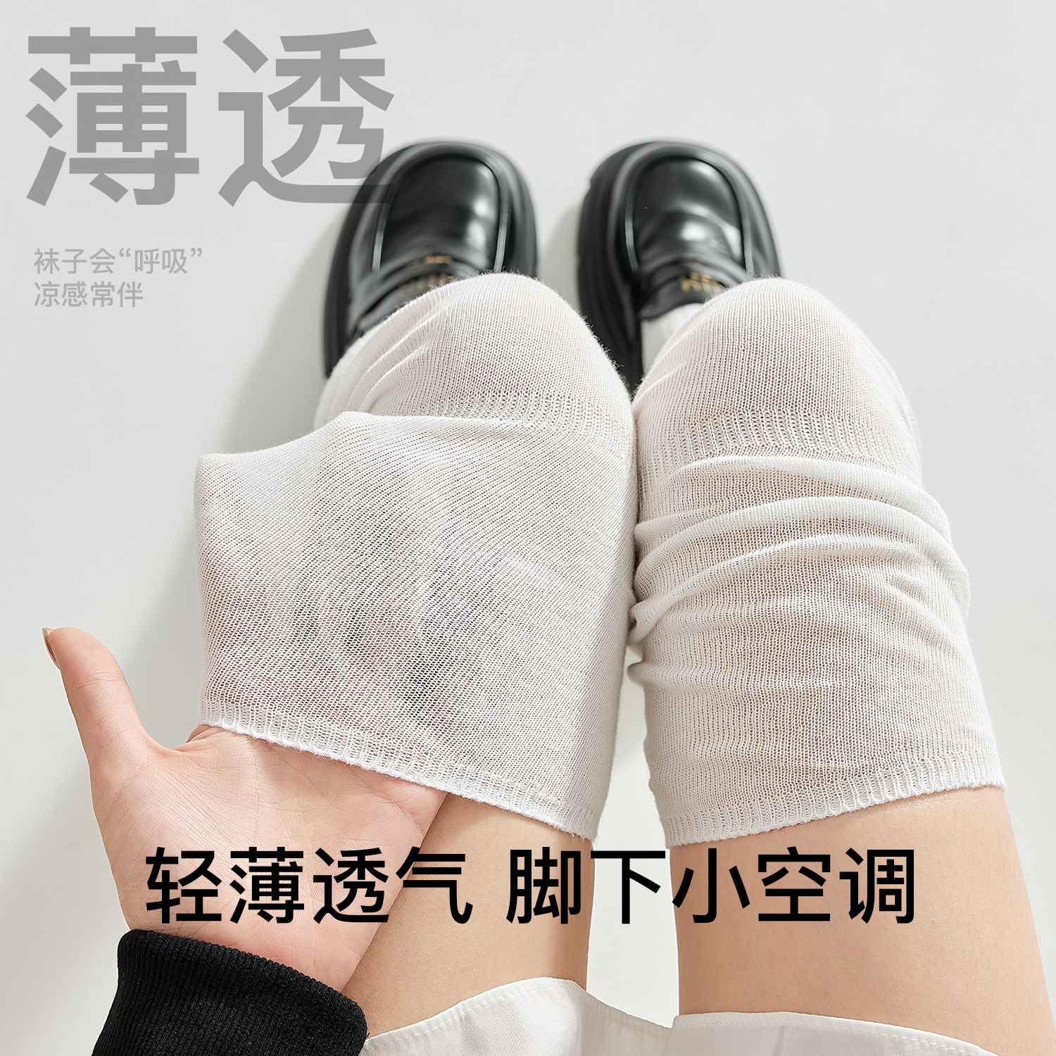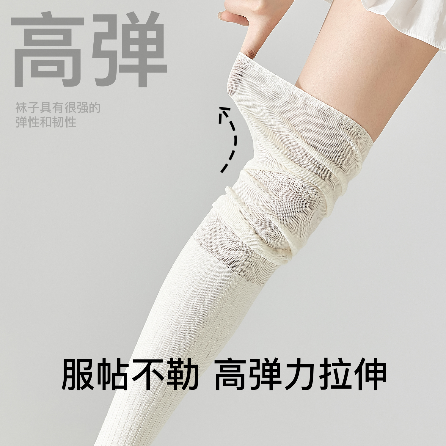 过膝袜长筒袜女夏季 高筒大腿袜防下滑白色JK夏天芭蕾风堆堆袜 薄款