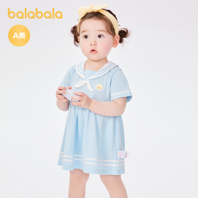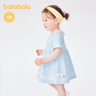 巴拉巴拉宝宝连衣裙婴儿裙子儿童公主裙女童夏装 海军风甜美文艺萌