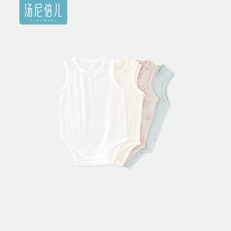 三角连体哈衣服 烧花男女宝宝无袖 汤尼倍儿婴儿背心包屁衣夏季 薄款