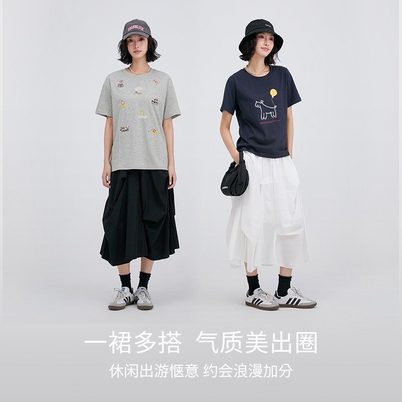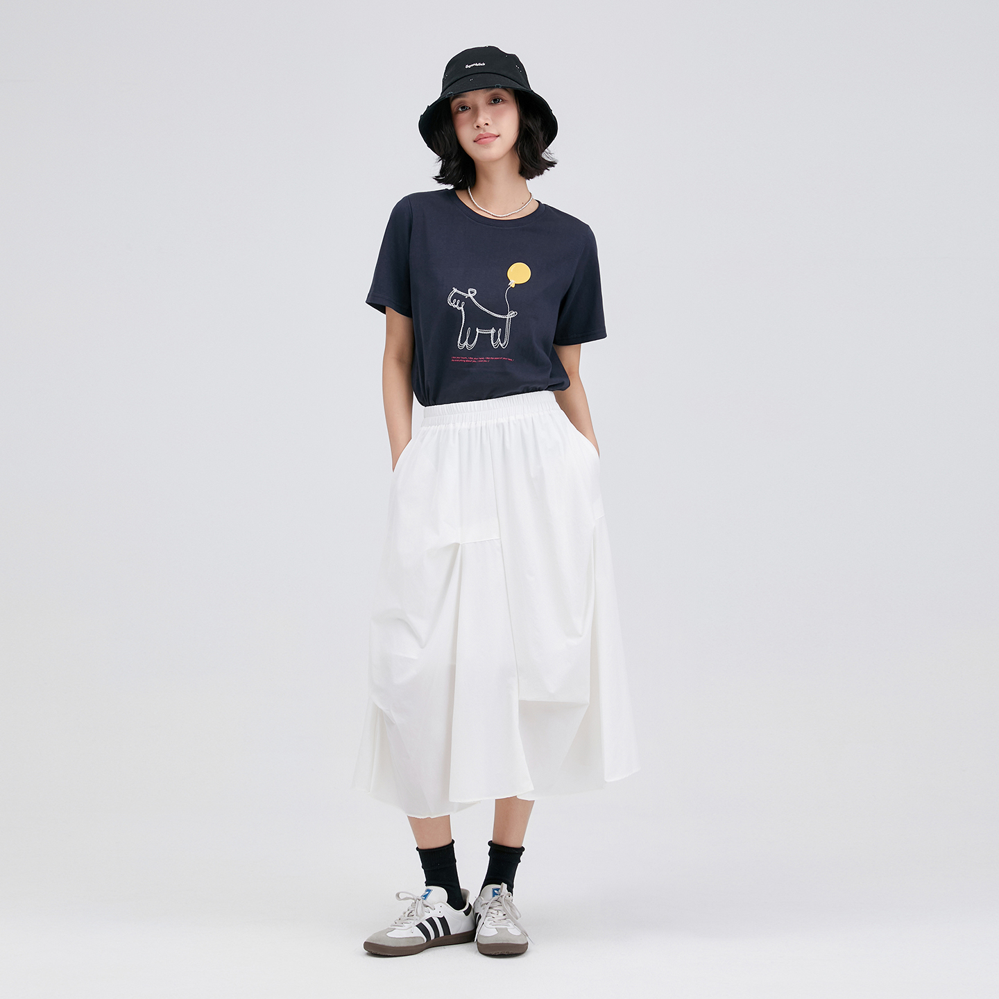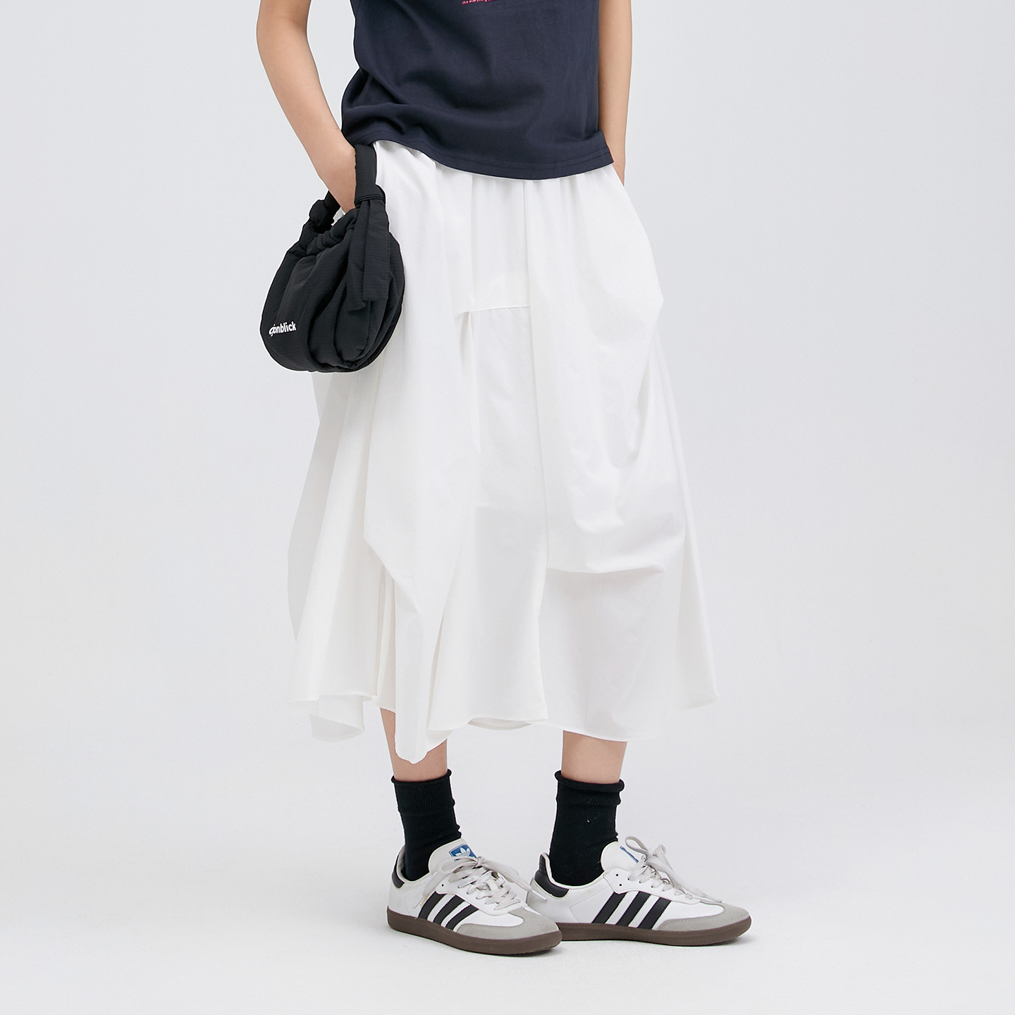 北欧时刻松紧高腰小白裙半身裙伞裙不规则长裙A字大摆裙女夏新款