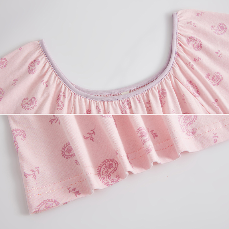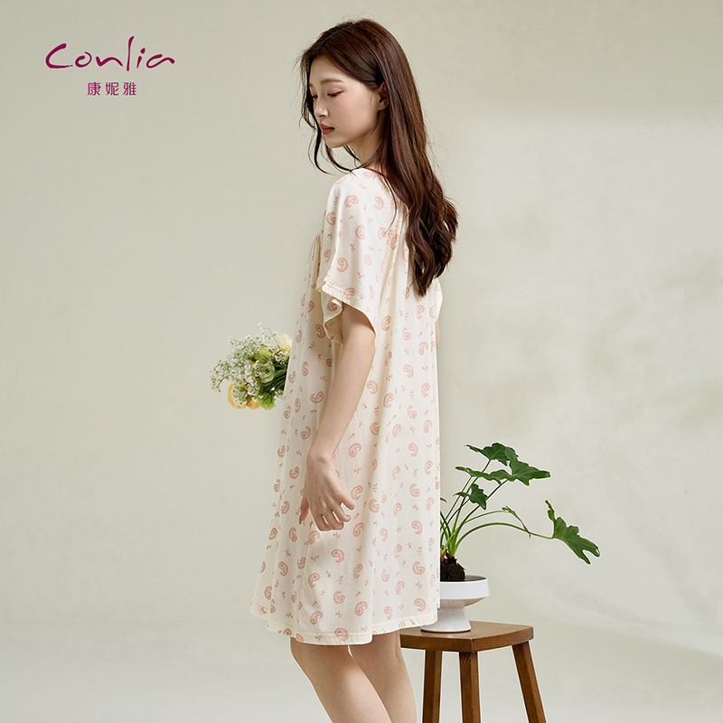 可爱睡衣家居服全棉女款 芬腾睡裙女士夏季 纯棉大码 短袖 连衣裙 薄款