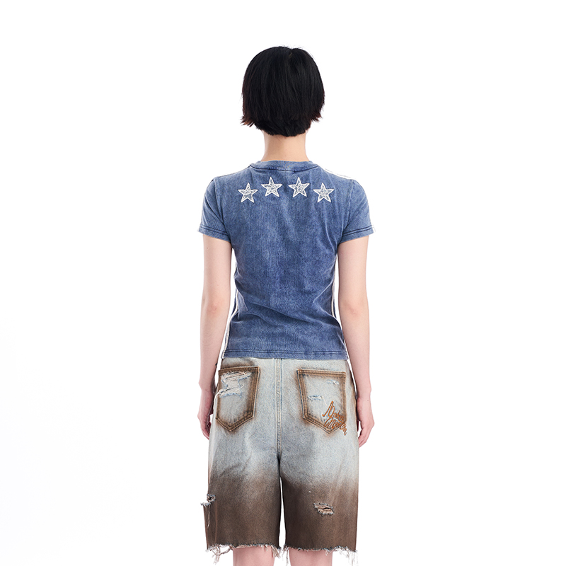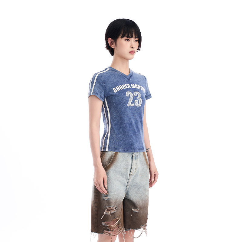 MARTIN2025夏季 蕾丝绣花短款 新款 T恤女V领修身 上衣 短袖 ANDREA