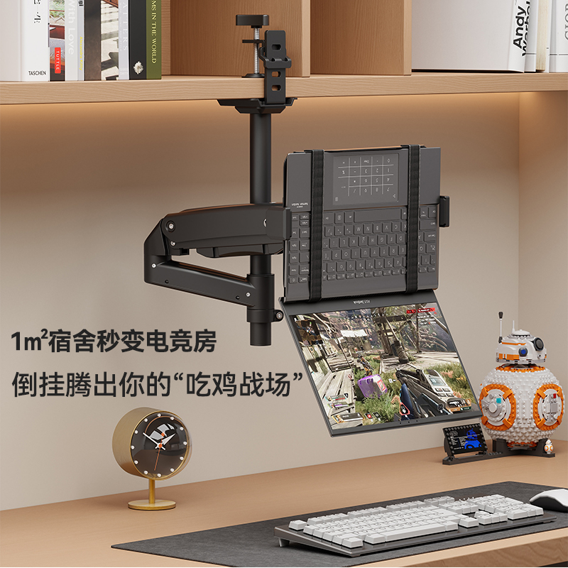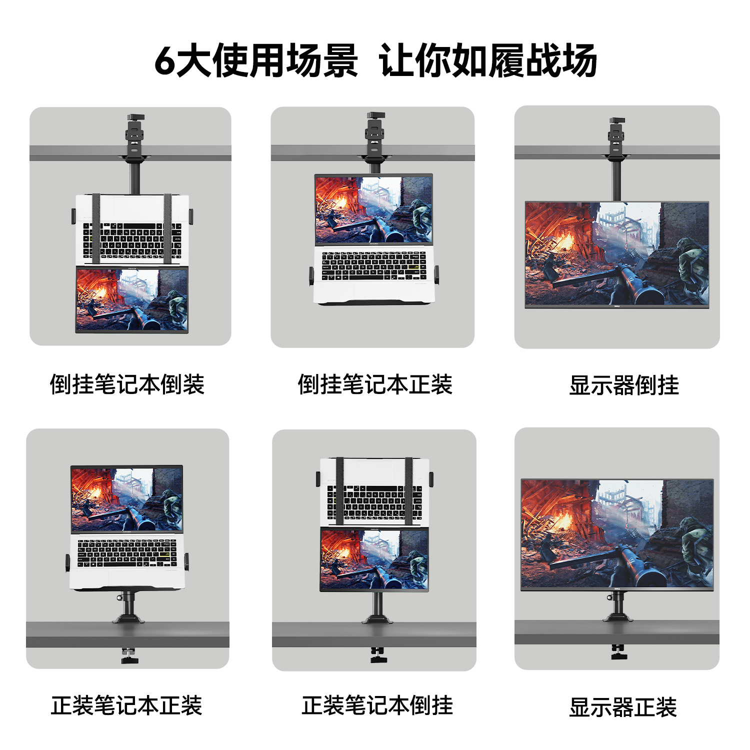 娱旭倒挂笔记本电脑支架桌面增高架立式 铝合金散热办公机械臂宿舍支架托悬空支撑架