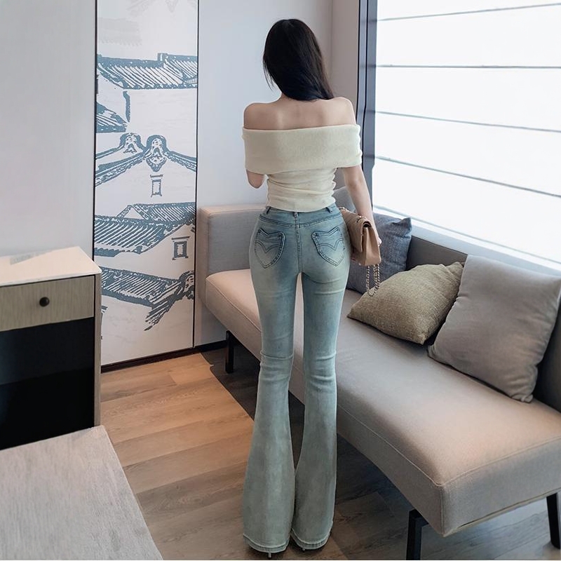显瘦美腿翘臀长裤 爱心口袋弹力微喇牛仔裤 高腰修身 新款 女2025秋季