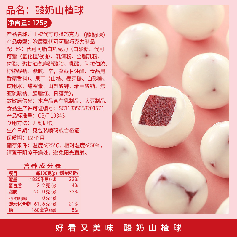 网红酸奶山楂球丁夹心巧克力豆解馋小零食小吃休闲食品独立小包装