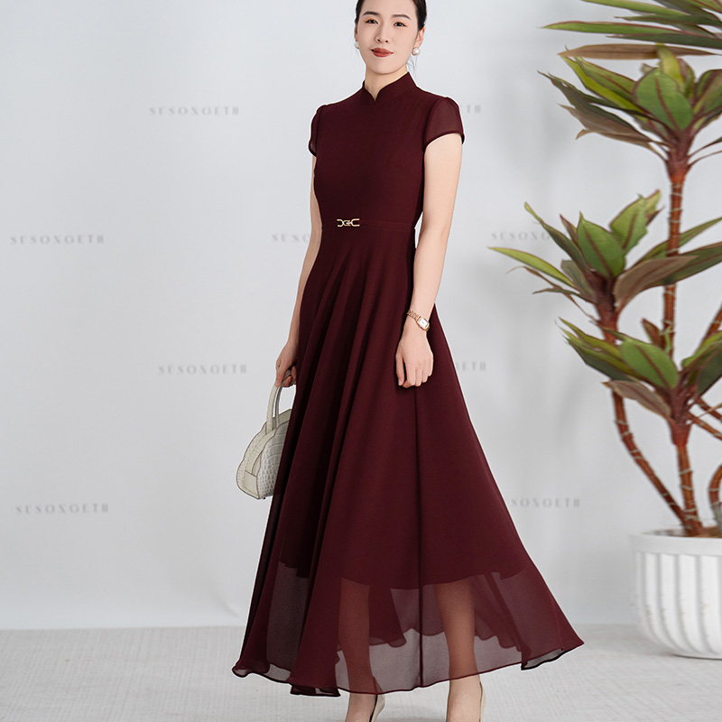 扭结连衣裙气质优雅长裙宴会礼裙 复古V领长袖 韩语琳 法式