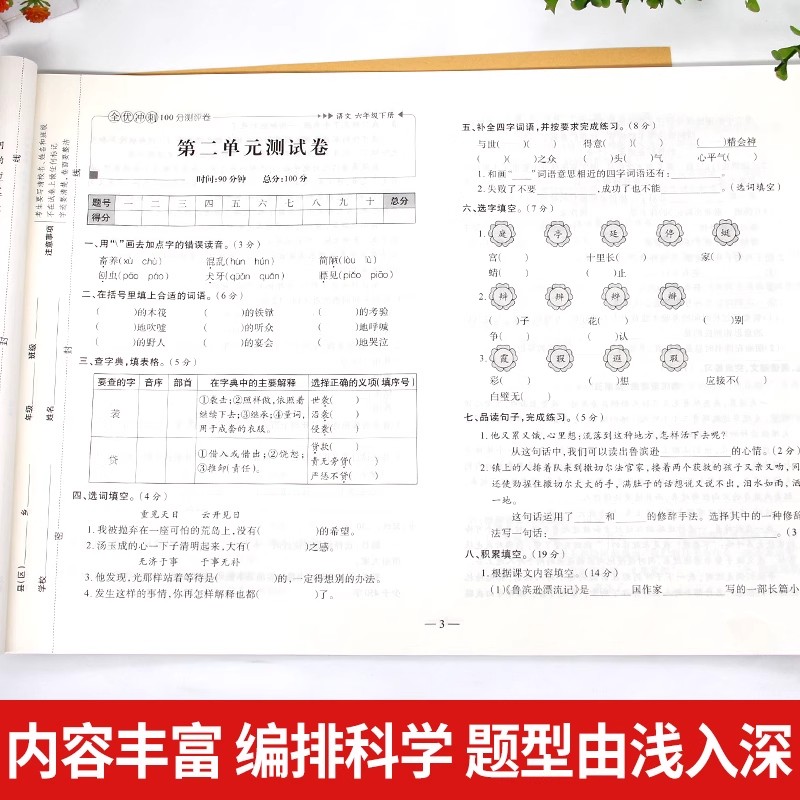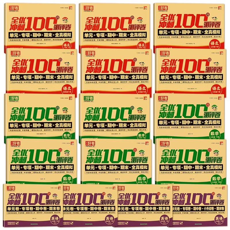 全优冲刺一百分人教版 期中模拟考试测评卷 小学一二三四五六年级下册试卷测试卷全套语文数学英语期末冲刺100分同步训练习题册单元