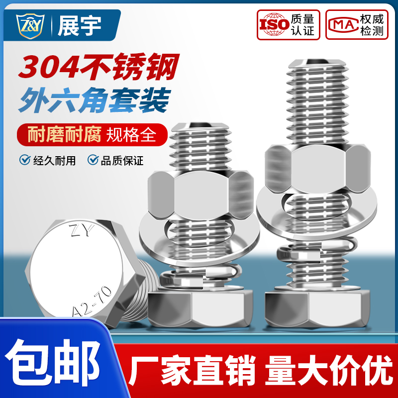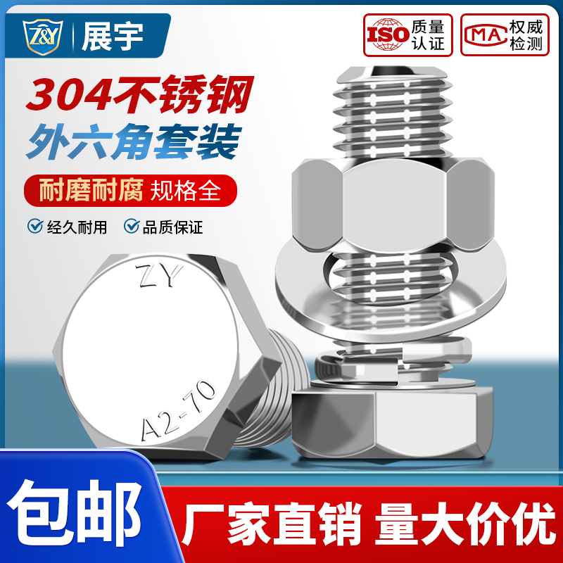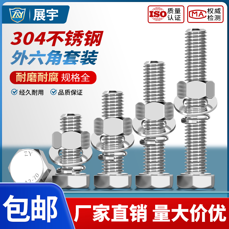 304不锈钢外六角螺丝螺母套装 M20 大全螺栓加长螺杆M3M4M5M6M8M10