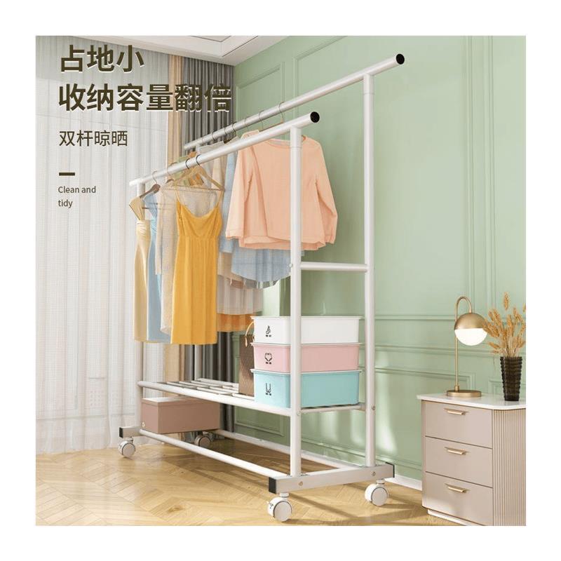 晾衣架落地折叠室内晒衣服架子租房衣帽架家用简易加粗卧室挂衣架