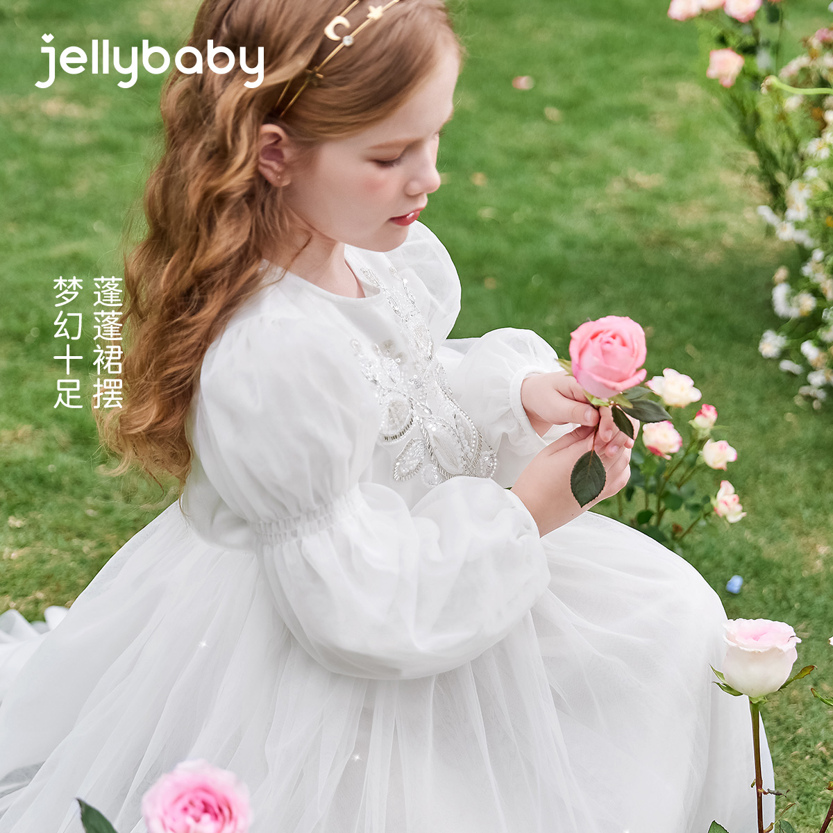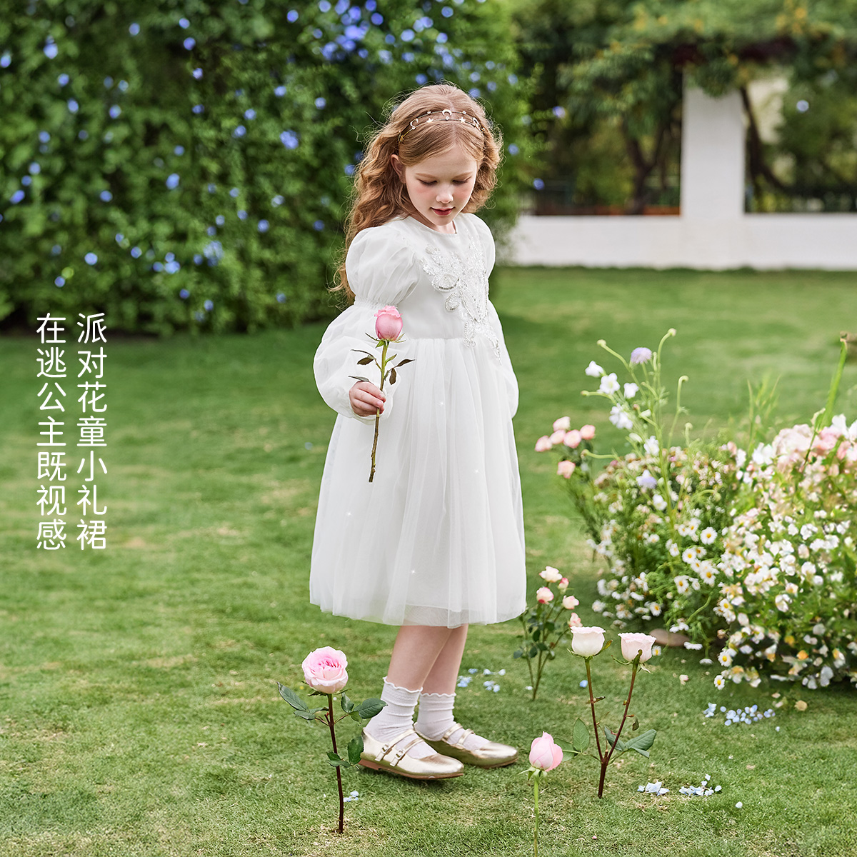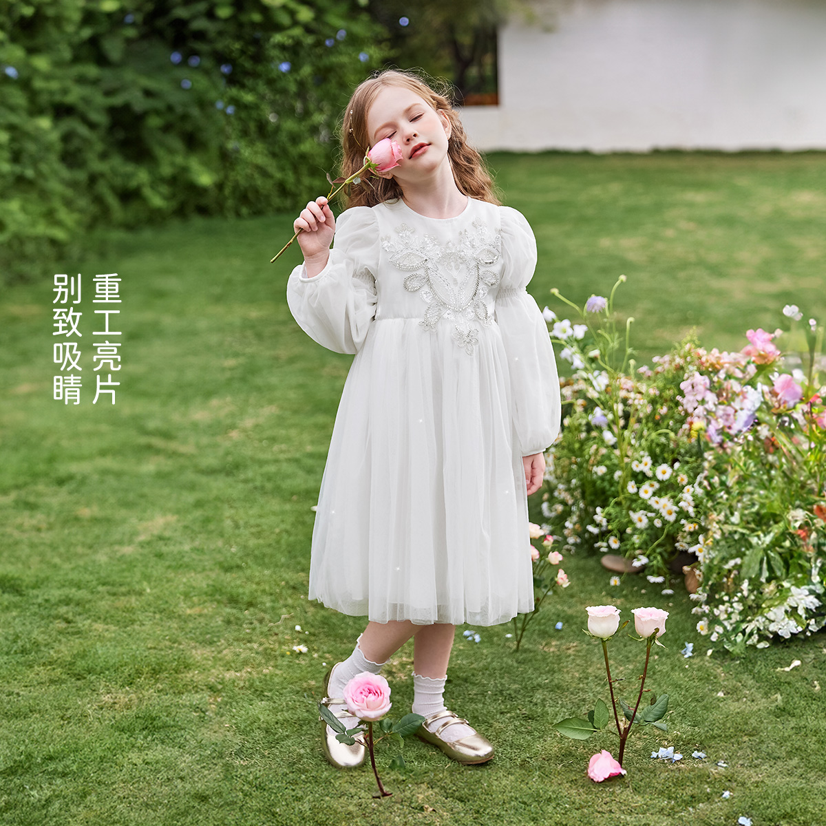 女童白色蛋糕裙大童秋季 亮片连衣裙儿童礼服 派对公主裙宝宝春秋装