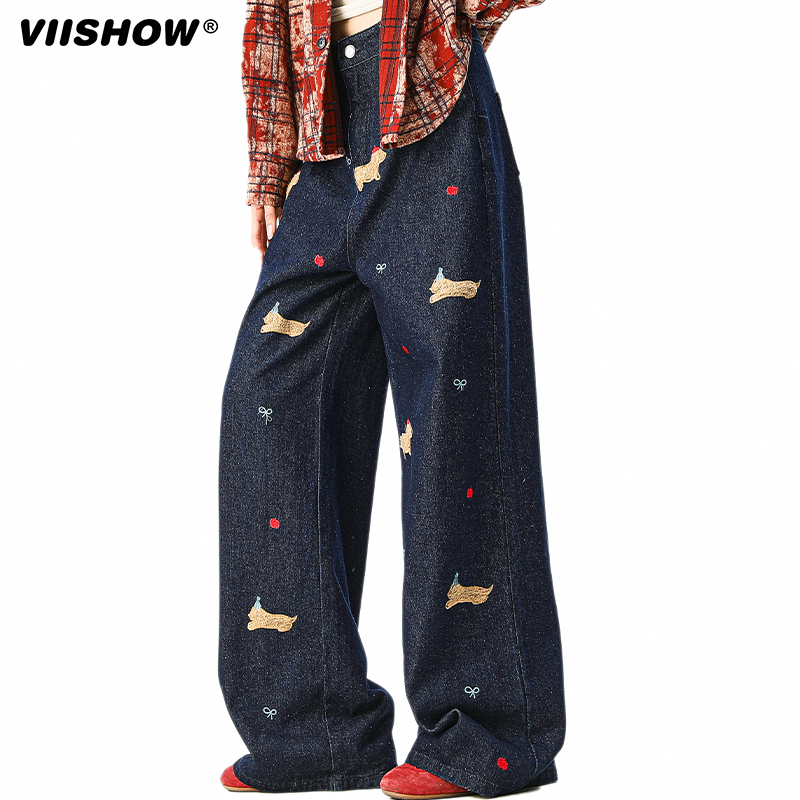 宽松显瘦百搭直筒阔腿牛仔裤 美式 新款 女2025秋季 潮 豹纹休闲裤