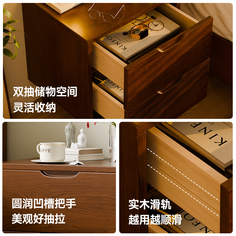实木床头柜家用卧室2025新款 轻奢高级感现代简约小型床边收纳柜子