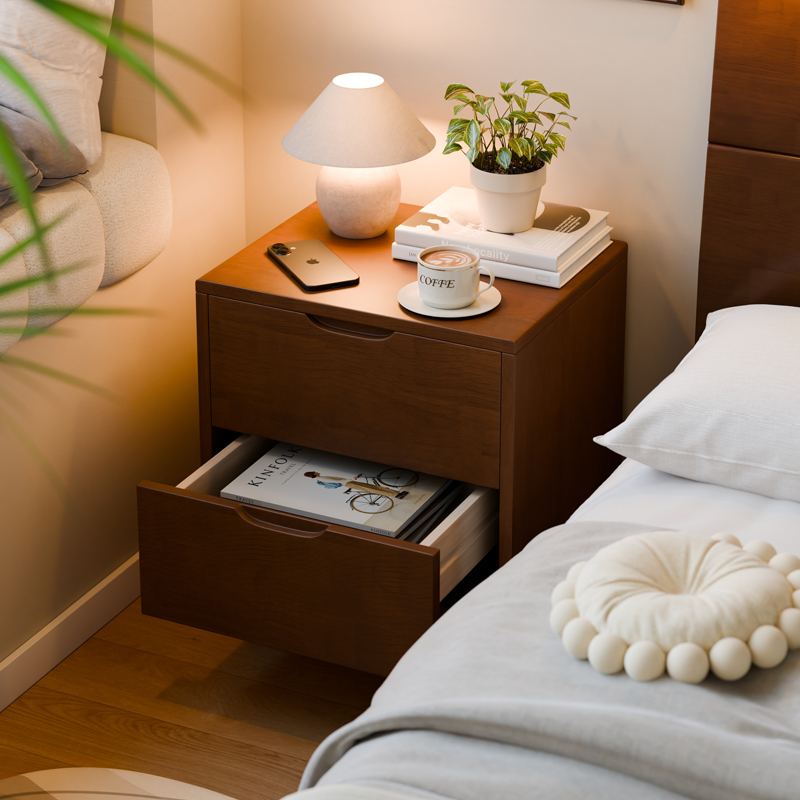 实木床头柜子2025新款 卧室家用床边柜中古风床头收纳柜简易储物柜