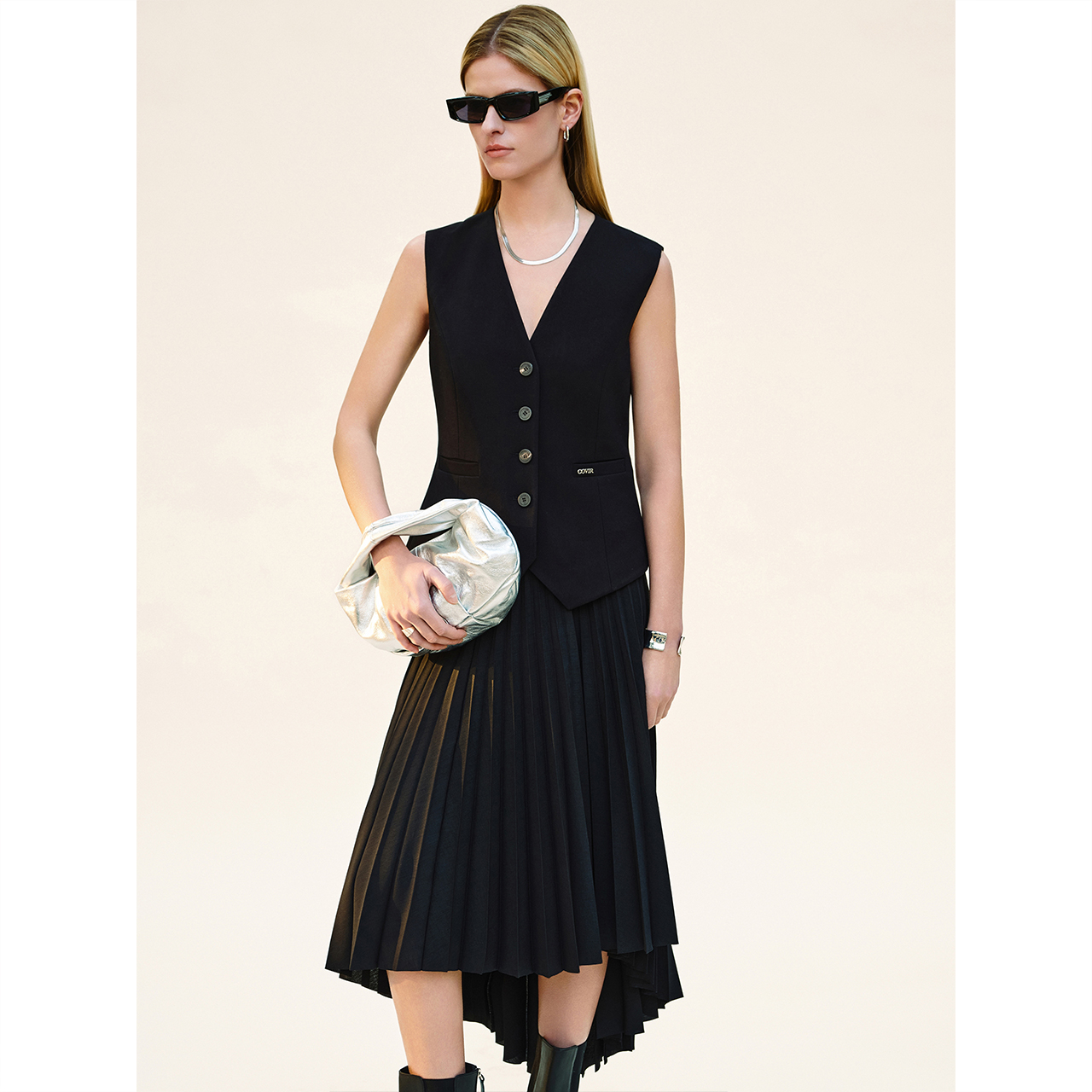 班尼路百褶半身裙女2025秋新款 小个子高腰显瘦学院风中长裙A字裙Q