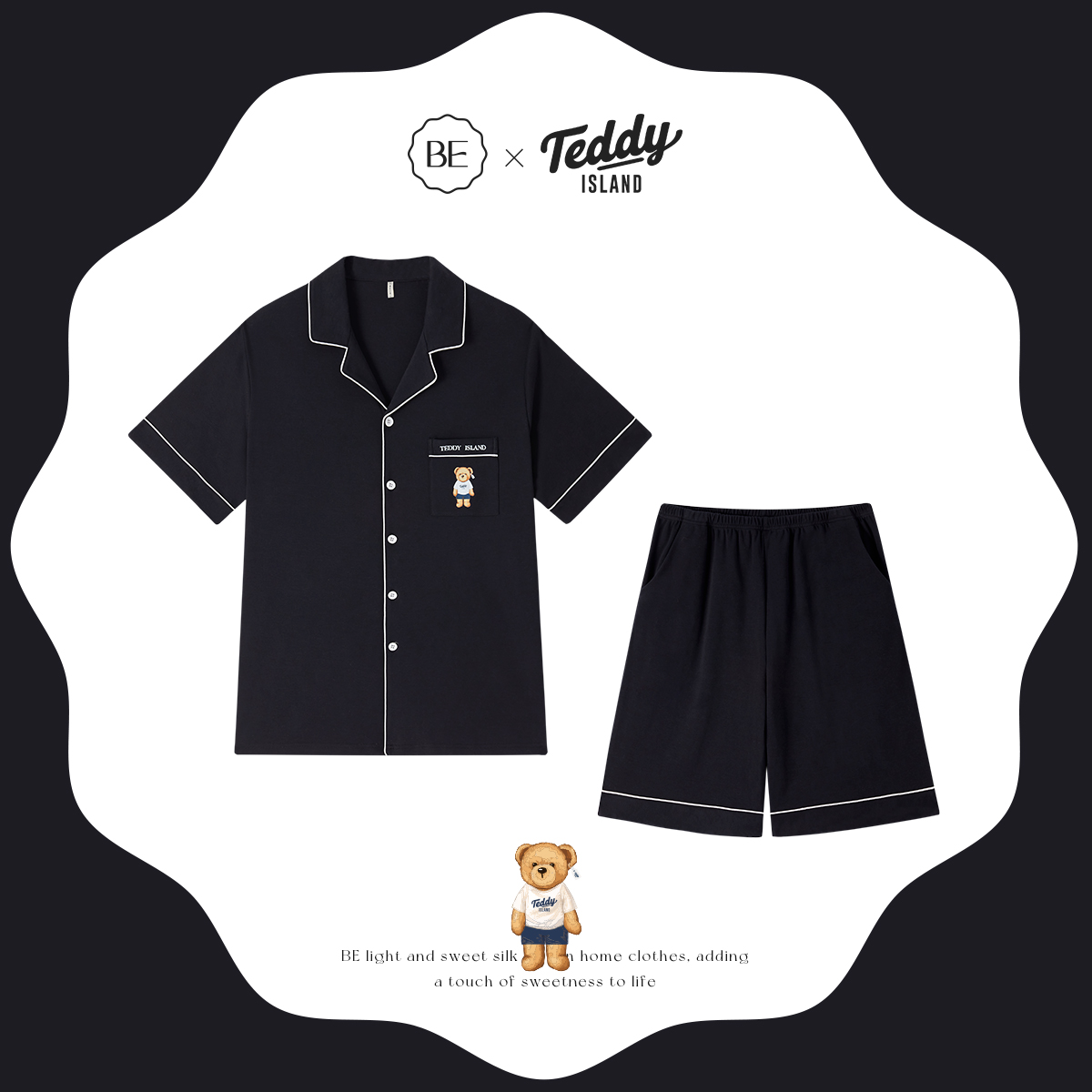 夏天2025新款 BE泰迪熊联名男士 短裤 黑色家居服短袖 棉 睡衣纯棉夏季