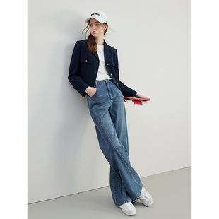 女绵老钱风人字纹驳领廓形通勤西装 LILY25秋新款 外套 天猫预售