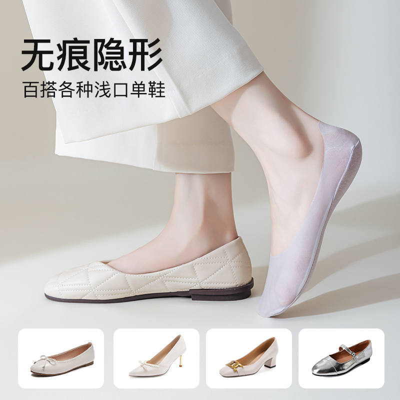 高跟鞋 纯棉底防滑不掉跟凉爽冰丝浅口隐形单鞋 袜子 薄款 船袜女夏季