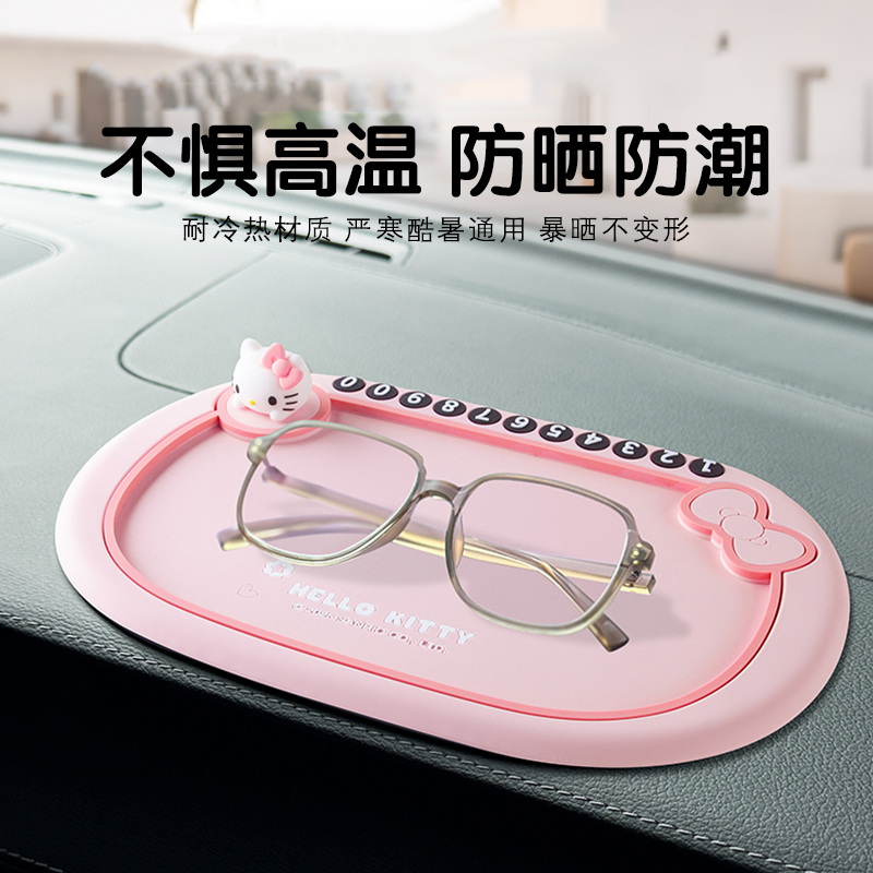 库洛米汽车防滑垫中控台多功能停车牌装 饰车载摆件手机耐高温垫子