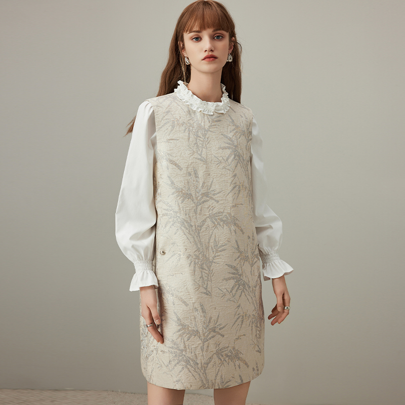 中长款 紫涵肌理感提花衬衫 休闲轻国风长袖 新款 网纱裙 连衣裙女秋季