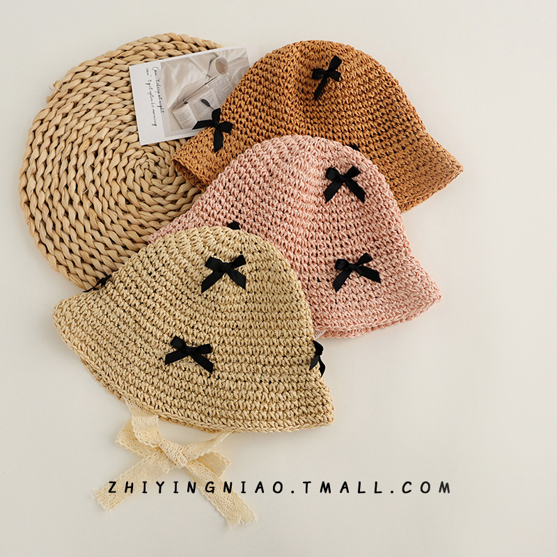 宝宝遮阳帽户外防紫外线太阳帽 编织草帽洋气韩版 婴儿帽子夏季 薄款