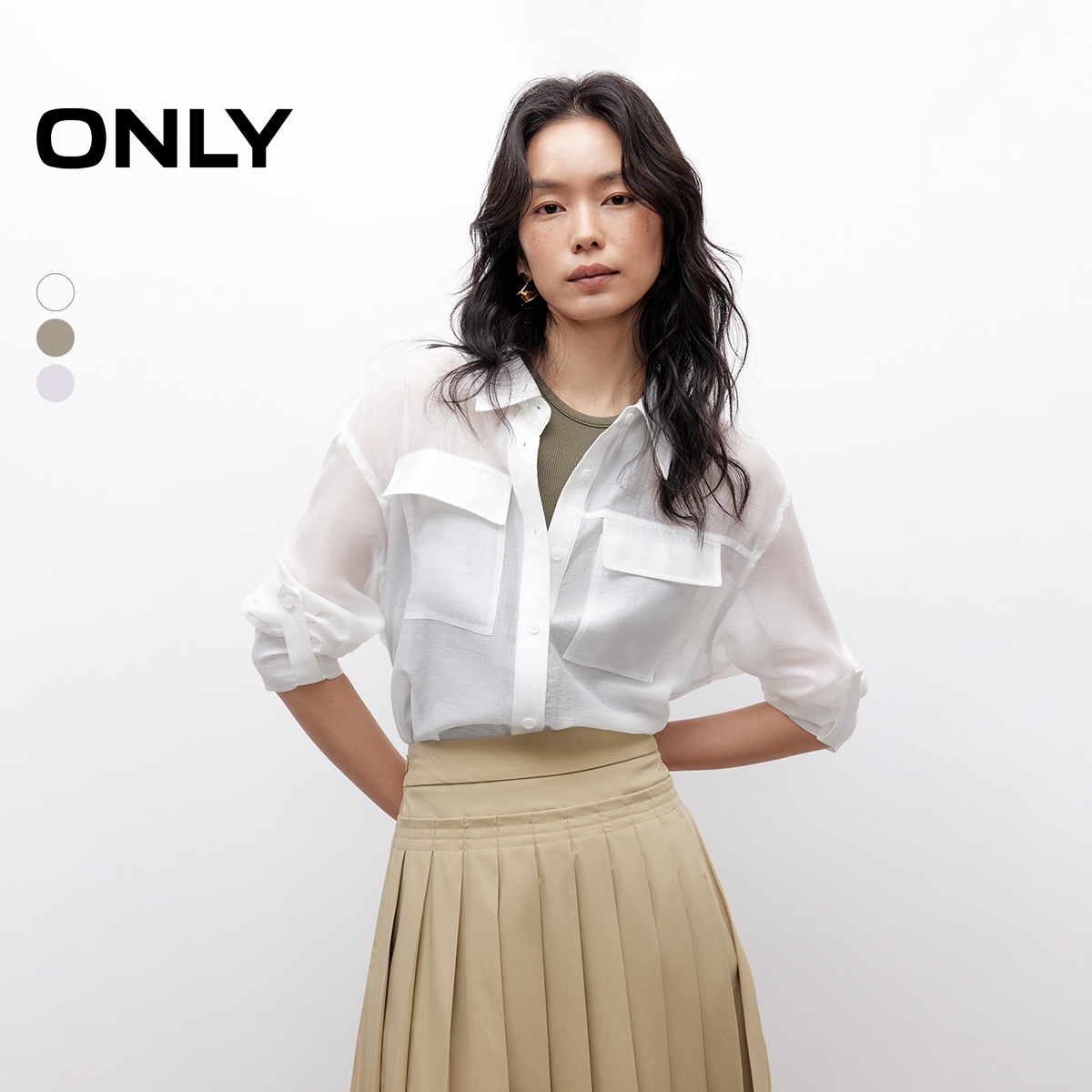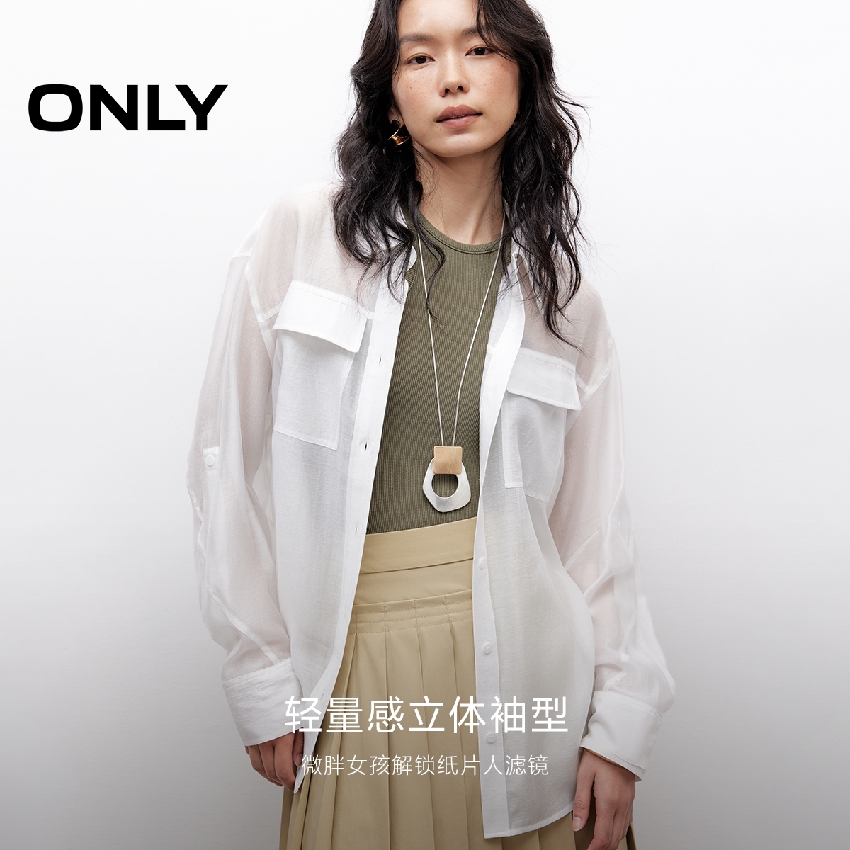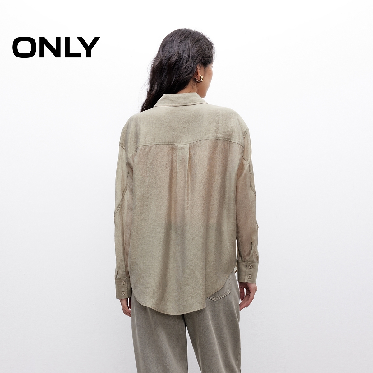 衬衫 ONLY2025秋季 型贴袋设计轻薄透感翻领宽松长袖 立体袖 女 新款