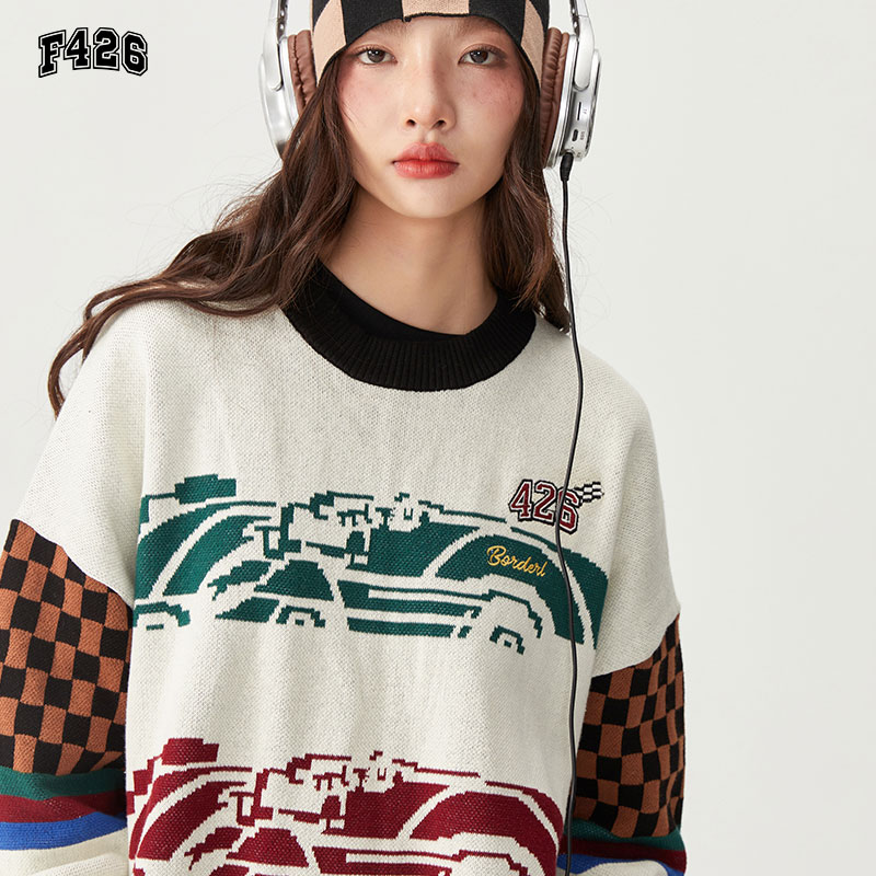 INXX 撞色假两件翻领设计开衫 美式 男女同款 毛衣情侣 复古针织衫