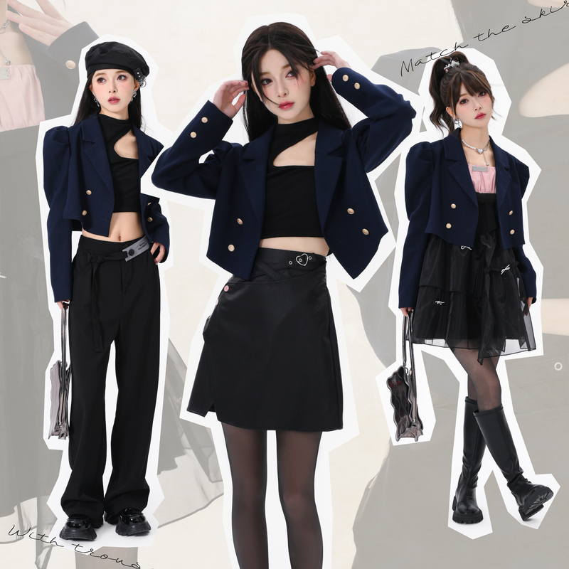 潮 上衣新款 原创森女部落小众设计感炸街西装 外套黑色显酷显瘦短款