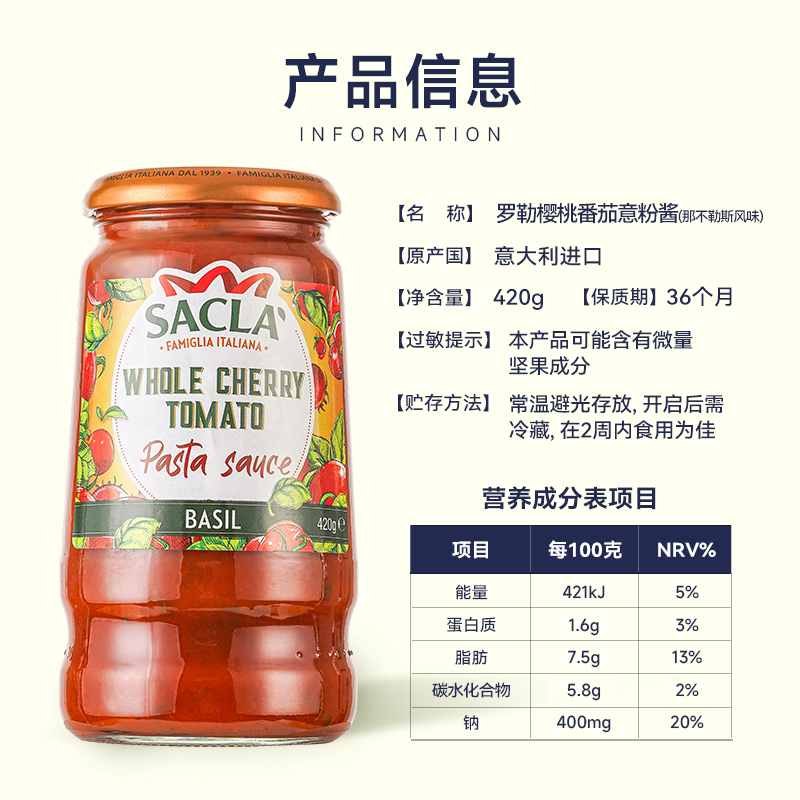 蒂安萨克拉樱桃番茄意大利面酱西餐拌面披萨意粉意面酱进口调味料