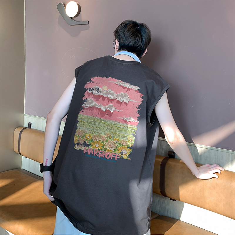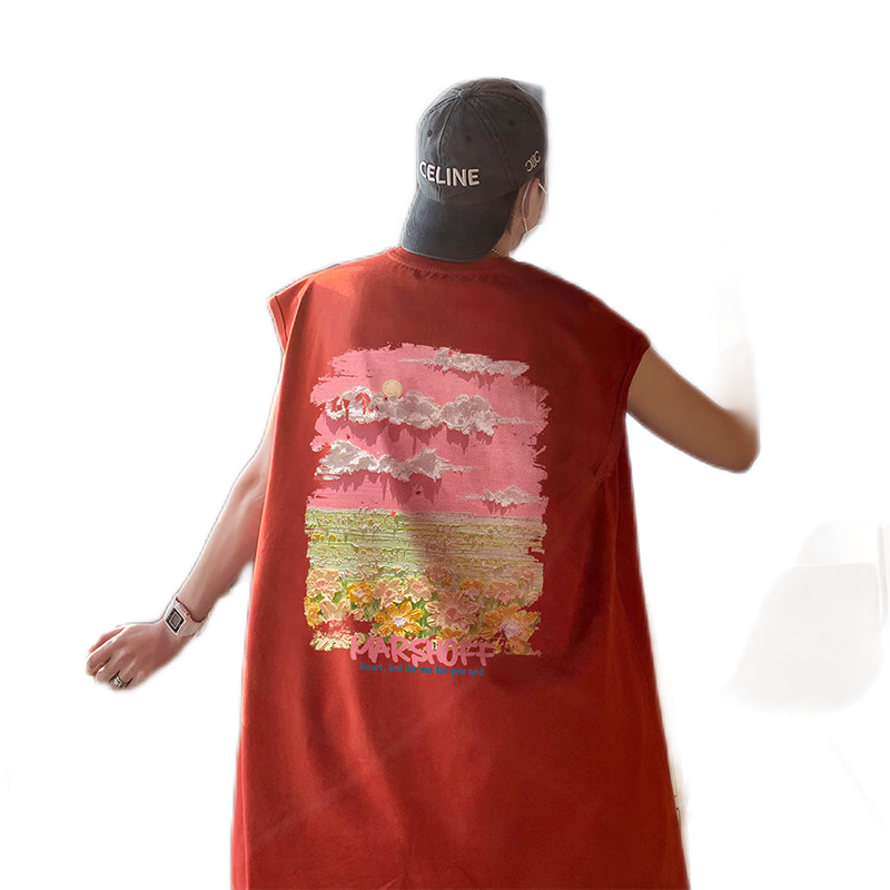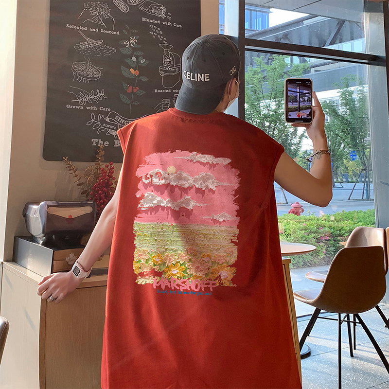 潮牌美式 短袖 宽松大码 坎肩情侣款 t恤上衣服 无袖 纯棉背心男生夏季