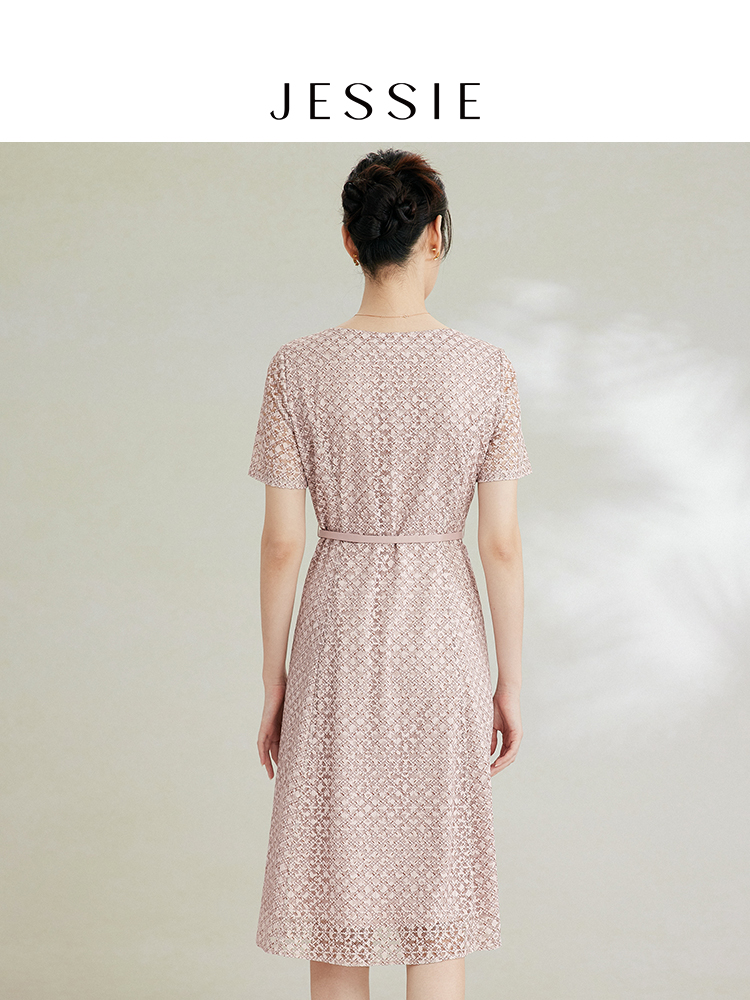 歌莉娅连衣裙女2025新款 重要场合蕾丝绣花白色裙子1E4R4K39A 夏季