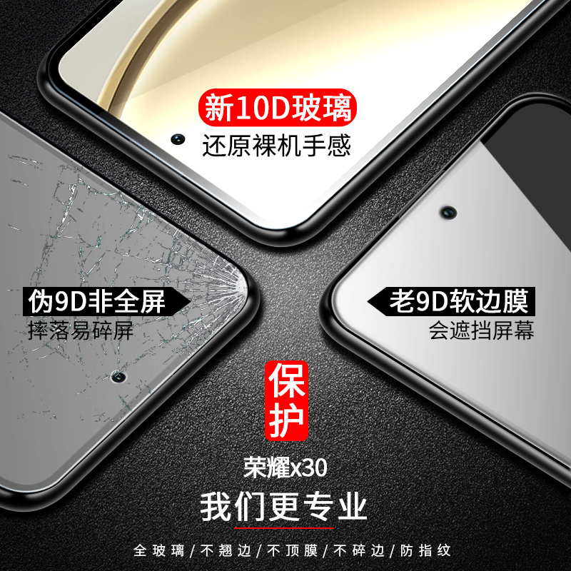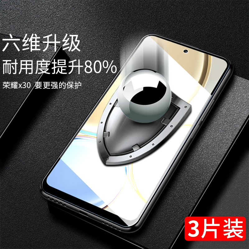 适用荣耀X30钢化膜华为x30全屏覆盖X3o手机膜HONOR抗蓝光×30防摔防指纹30x保护膜ANY AN00贴膜全包无白边