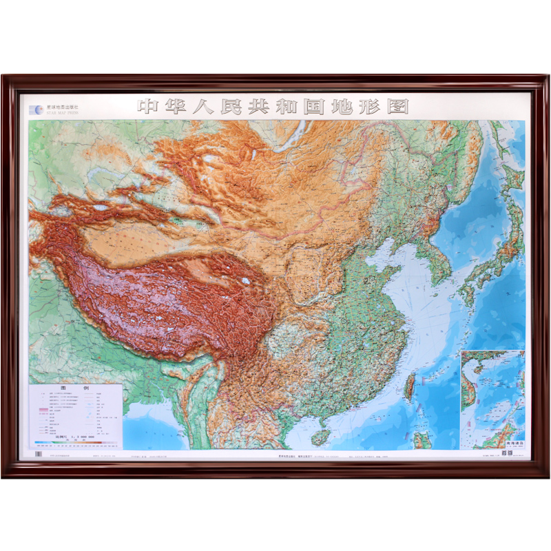 学校地理教学教具 饰挂图 星球社 大型办公室会议室装 中国地形图超大2.28x1.68米立体地图3d凹凸带边框沙盘