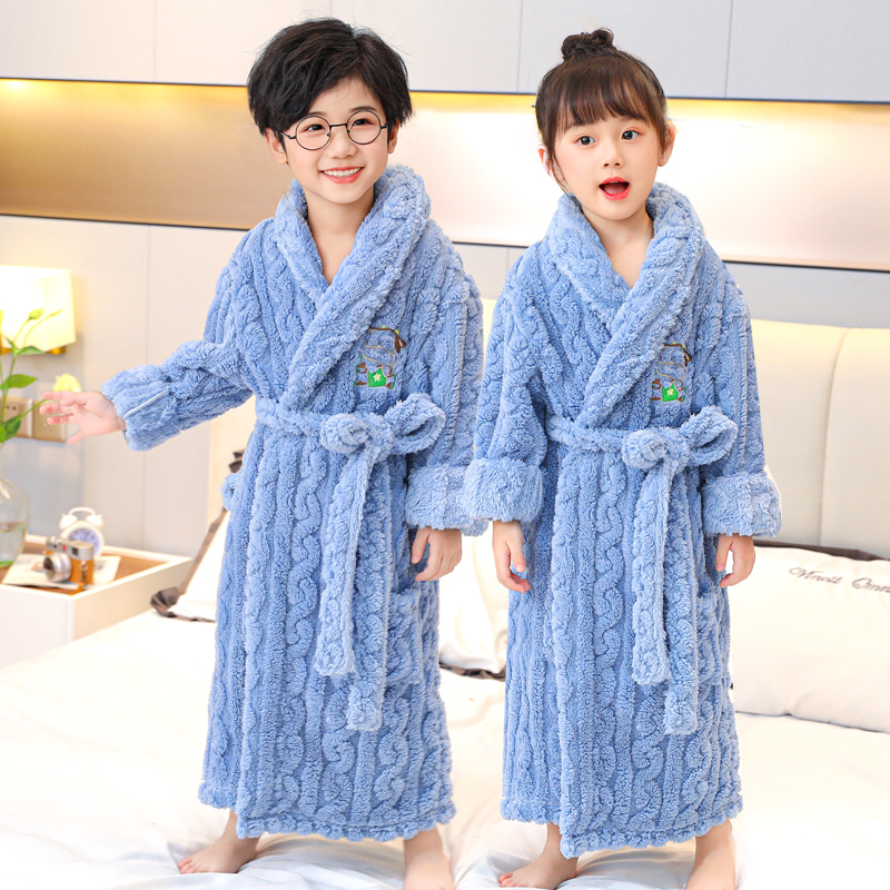 新睡衣秋冬珊瑚绒男童加厚可爱长款 睡袍女童法兰绒保暖家居服浴袍