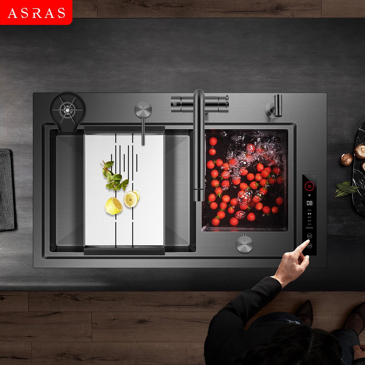 阿萨斯智能水槽水触媒果蔬净化水槽厨房多功能洗菜机洗杯器大双槽