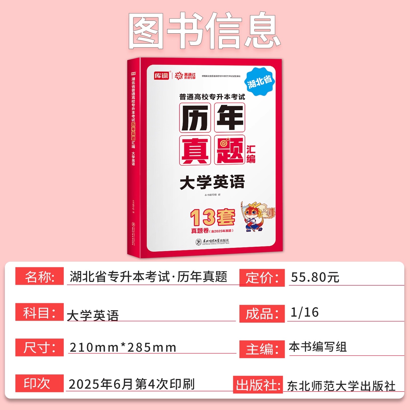 库课2026湖北省专升本英语历年真题试卷官方库课2025年湖北普通高校在校生全日制统招专升本模拟试卷必刷2000题考试真题卷复习资料