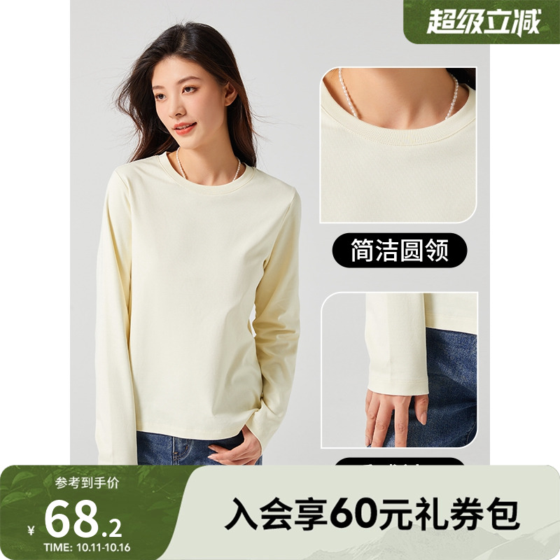 T恤2025年秋款 基础纯色热风纯棉长袖 女士简约上衣 女款 热风打底衫