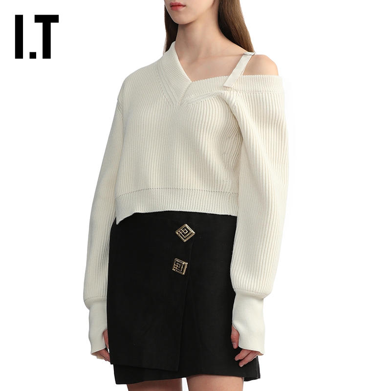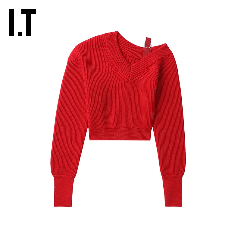 新品 不对称针织衫 欧美设计感露肩短毛衣3KN345XL JACQUEMUS女装