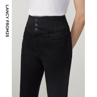 女25秋新款 CHICJOJO直筒牛仔裤 黑色九分法棍休闲裤 舒弹瑜伽课