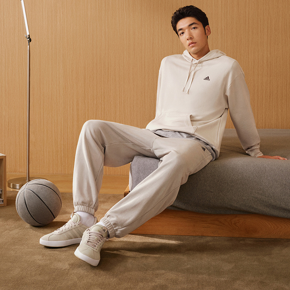 休闲加绒加厚连帽卫衣套头衫 秋冬adidas阿迪达斯官方轻运动 男装